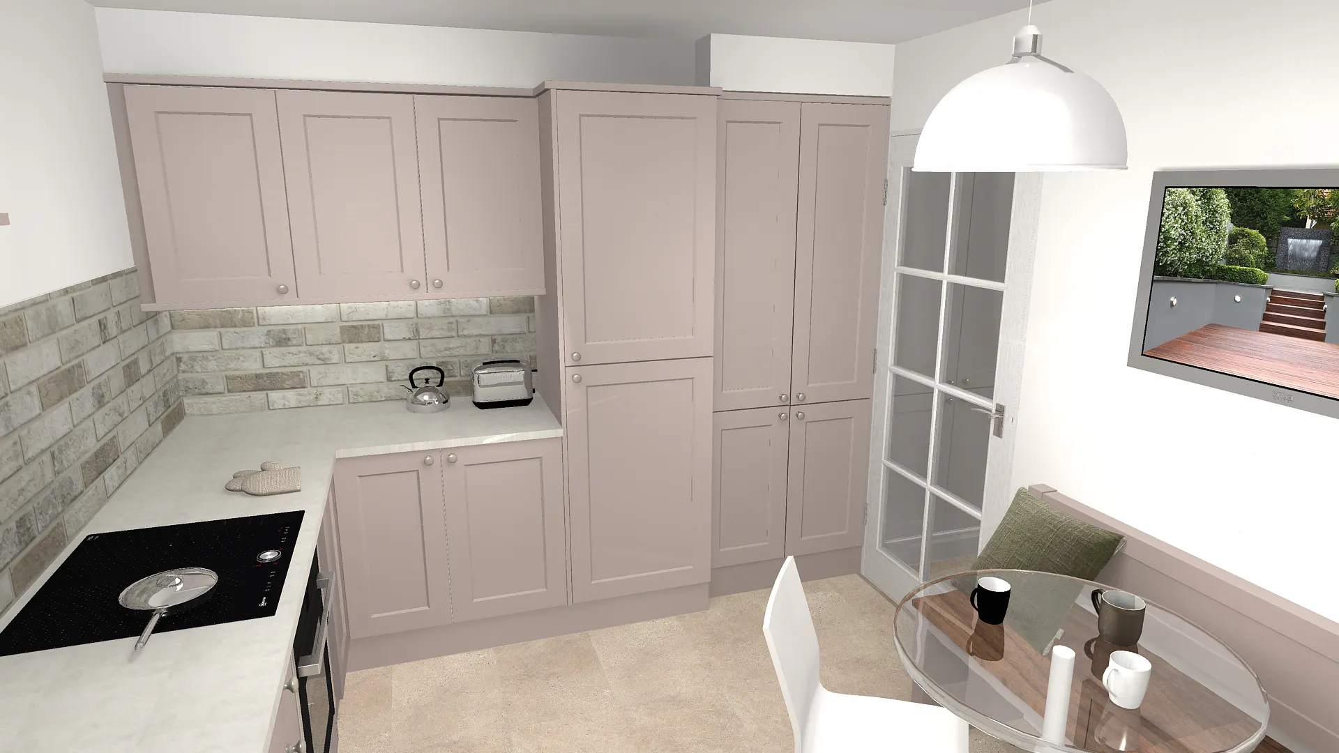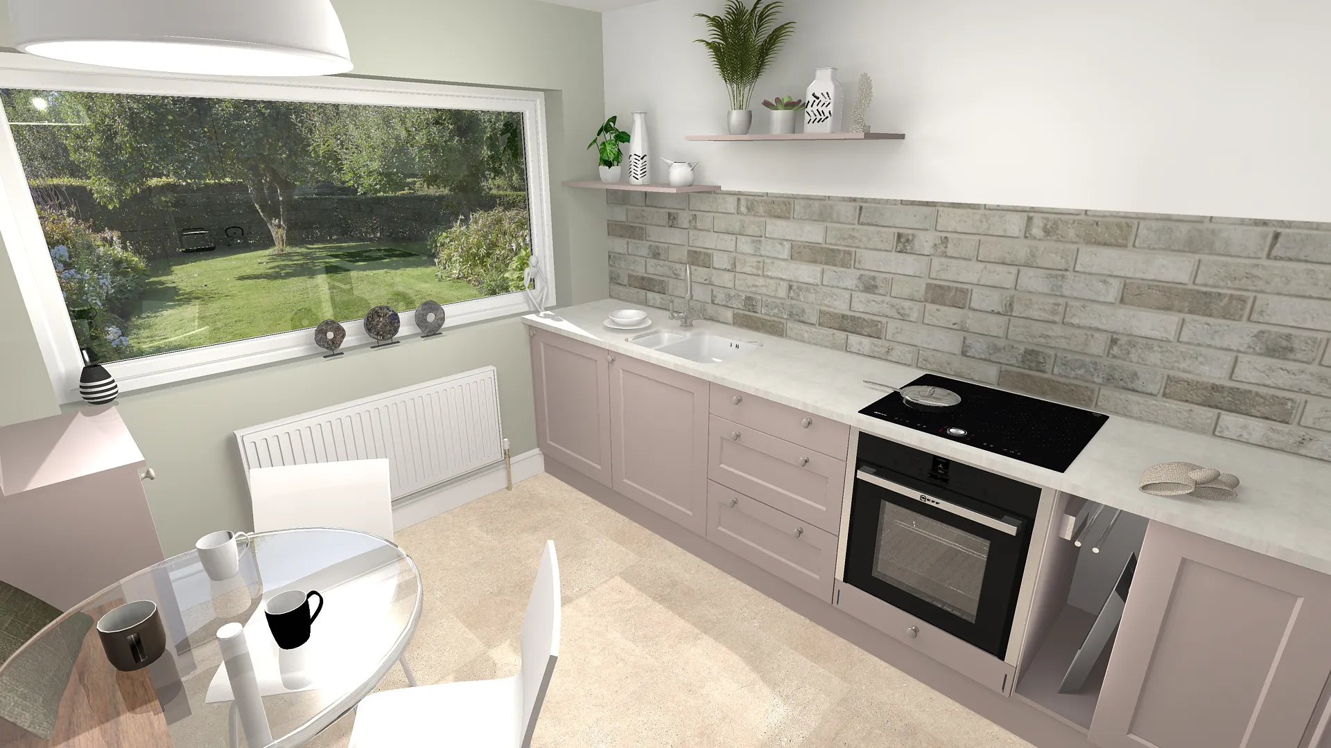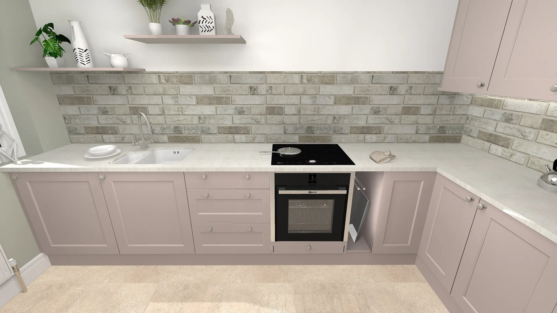 To further enhance the classic feel, Old English Fog brick tiles were chosen for the splashback area, introducing gentle muted tones and texture. The flooring—originally considered as a wood effect—was eventually confirmed as Fossil Limestone LVT, offering a light, fresh finish that brightened the entire room.