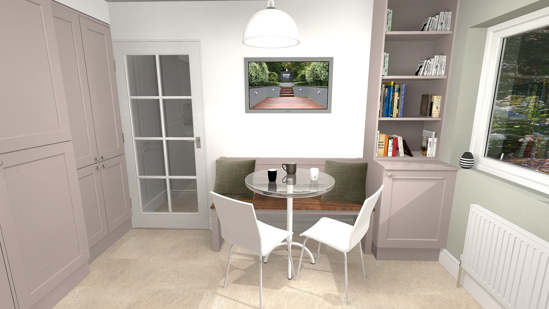 The final design featured Solent Smooth Shaker units in Kashmir, paired with brushed nickel knobs for a subtle yet sophisticated classic look. French White Quartz worktops were selected not only for their beauty but also for their practicality, enabling the inclusion of a white ceramic undermount sink—a detail the client particularly loved.