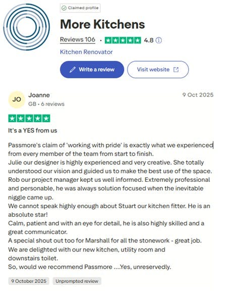 “It’s a YES from us! Passmore’s claim of ‘working with pride’ is exactly what we experienced from every member of the team from start to finish.